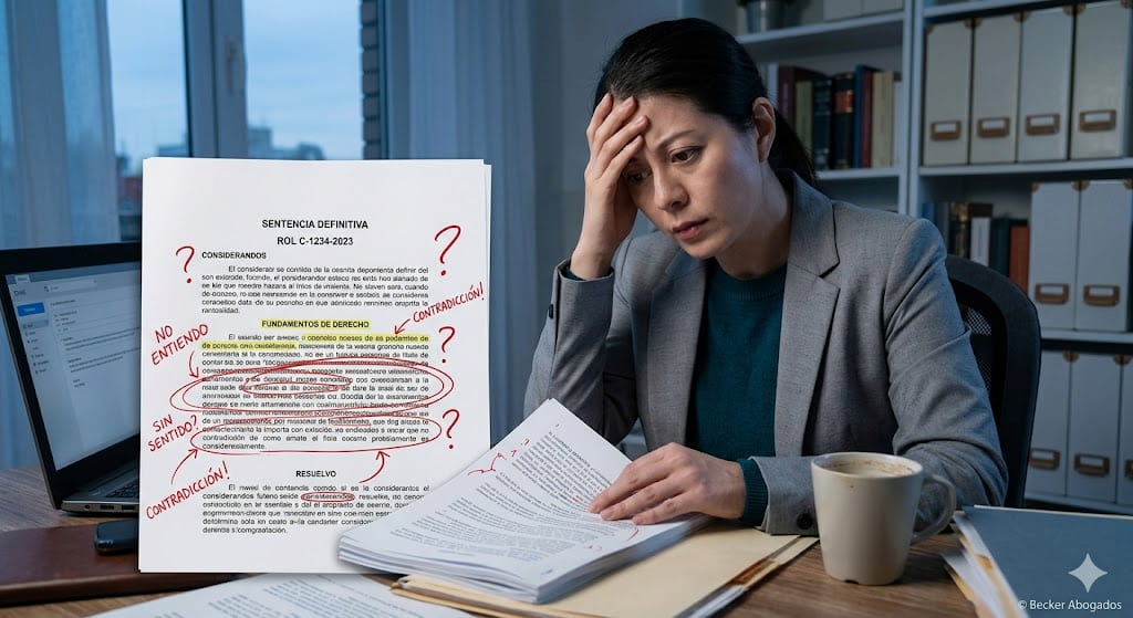 En Becker Abogados hemos trabajado con casos donde, al revisar la sentencia, se detectan contradicciones claras que permiten estructurar una estrategia para impugnar el fallo.
