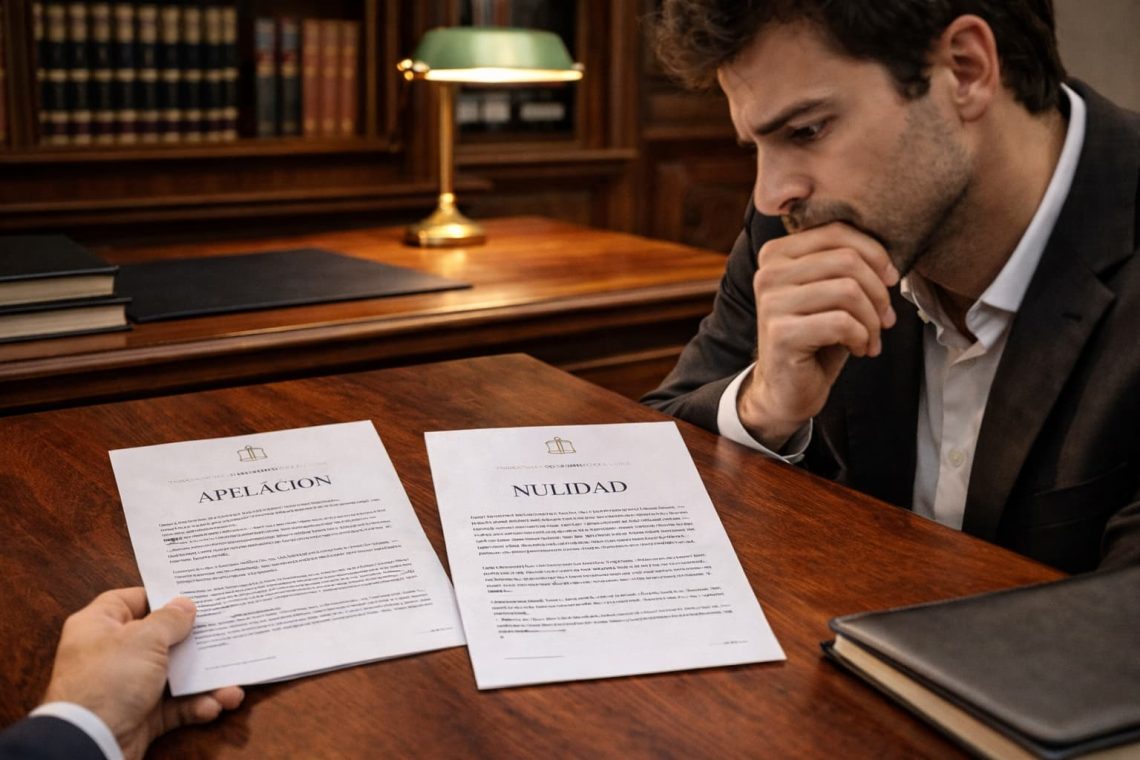 Antes de decidir entre apelación o nulidad, necesitas tener clara una diferencia clave: no sirven para lo mismo. Elegir mal aquí puede hacer que pierdas tu última oportunidad de cambiar el resultado.