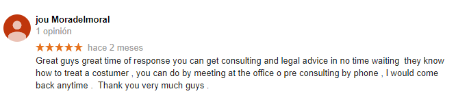 According to the dictionary, experience is the teaching acquired through practice. We have attended with care and dedication to hundreds of domestic and foreign clients, who show us their gratitude through brief reviews of their experience in our firm.